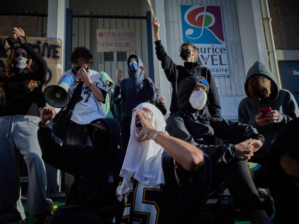 Some protesters were in solidarity with the Palestinians of Gaza during the war on the Israeli strip, and Palestinian flags were visible across the country. Protesters have blocked the Eurolinks weapons factory in Marseille, which is believed to supply equipment to Israel, and are holding a large flag with the words “Closing the Genocide Factory.”