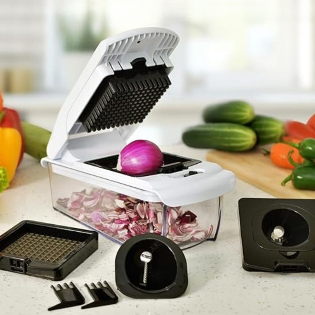 I’m not the only one who’s been blown away by this vegetable chopper. The bestselling gadget has over 110,000 5-star ratings and sparkling reviews. Like me, you wanted a safe, quick and easy way to cut the ingredients, This vegetable chopper is the answer.
