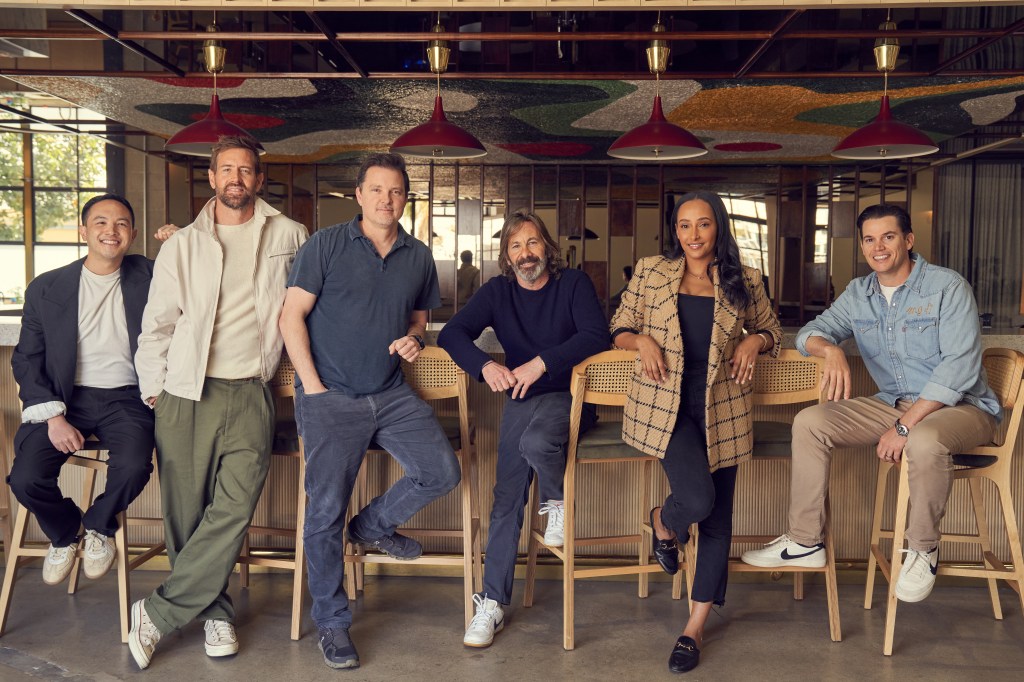 Clockwise from left: Carol Goll, head of endorsements; Mark Herwick, co-president of non-scripted, Range Studios; Will Funk, co-president of sports; Greg Luckman, co-president of sports; Jessica Lacy, head of Range Select; Peter Micelli, CEO; Mick Sullivan, founding partner