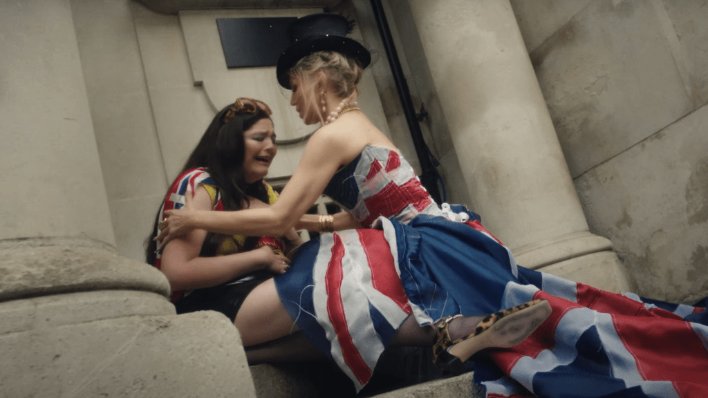 Too Much star Megan Stalter recently spoke to Deadline about her new London-set romantic comedy series, which premieres July 10 on Netflix, and the “very crazy” experience filming a promo video for the 2006 single ‘London Bridge‘ with the 8x Grammy winner on the actual eponymous bridge.