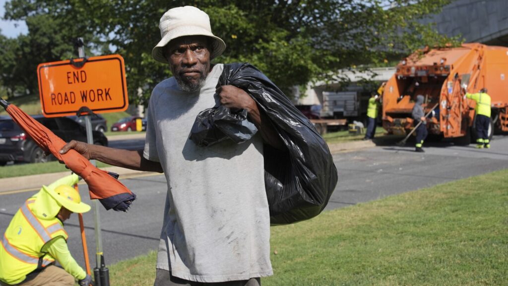 At the camp near the Peace Institute, a man named George, 67, walked Thursday, carrying an umbrella in one hand and a garbage bag with some of his belongings on the other. City workers put mattresses and other properties in trash trucks idling nearby. He said goodbye to it.